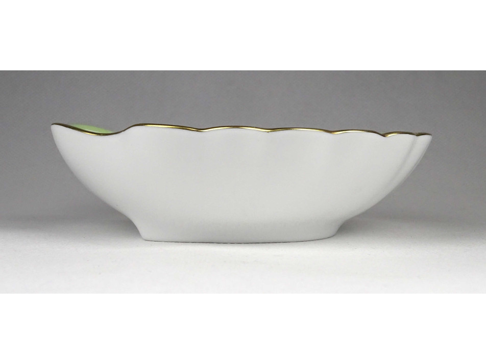 Hibátlan állapotú, aranyozott, gazdagon díszített, Viktória mintás kagyló alakú Herendi porcelán kínáló tál, névjegykártya tartó vagy gyűrűtartó tálka.