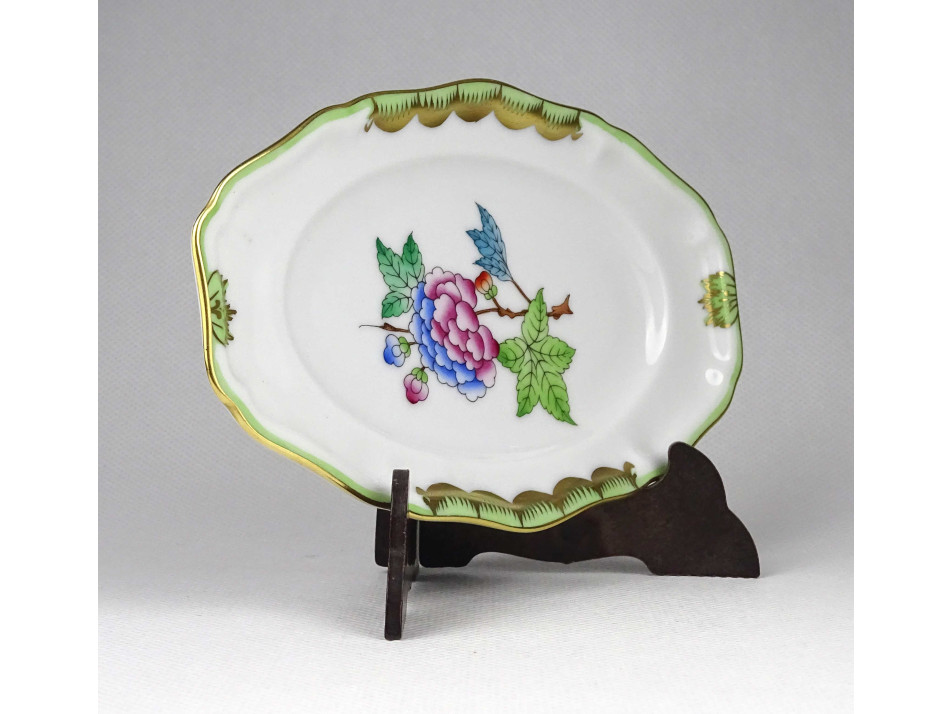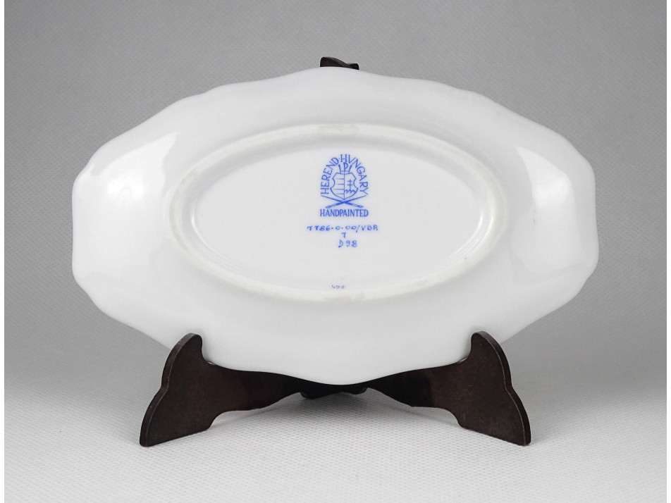 Régi, ovális alakú, Viktória mintás Herendi porcelán tál, tálka, hamutál.