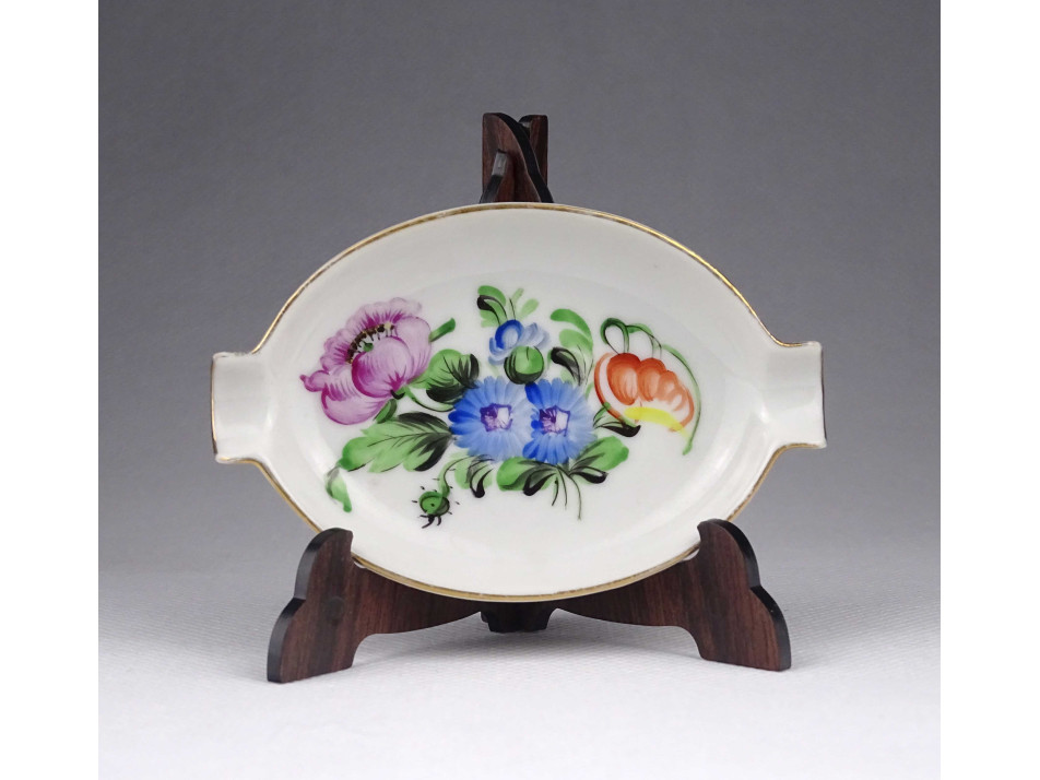 Hibátlan állapotú, kézi festésű virág mintás Herendi porcelán kétállásos hamutartó, tálka.