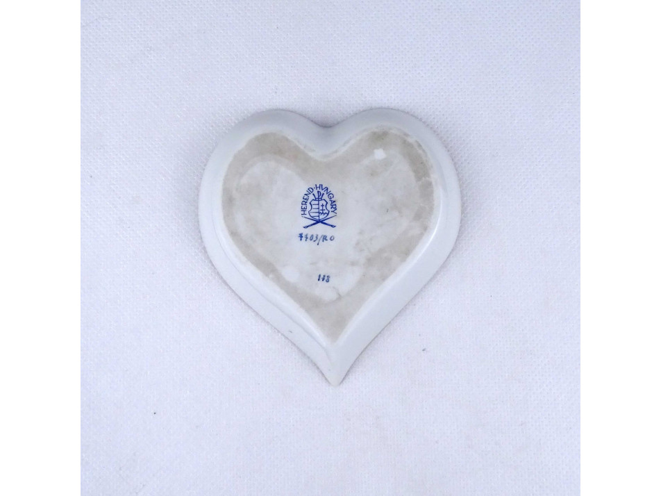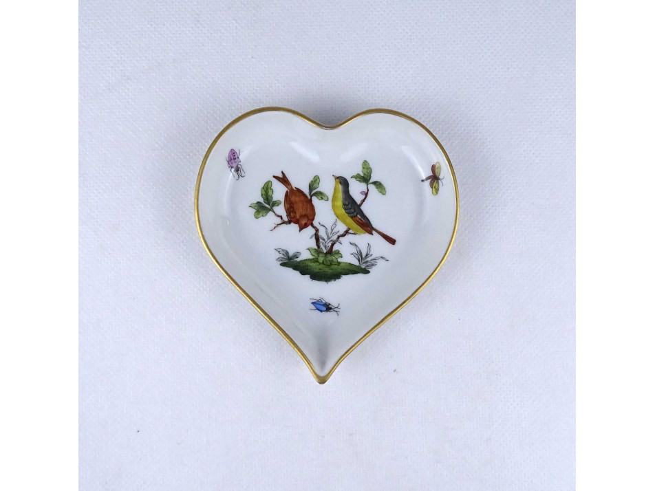 Régi, hibátlan állapotú, szív alakú rothschild mintás Herendi porcelán tál, hamutál.