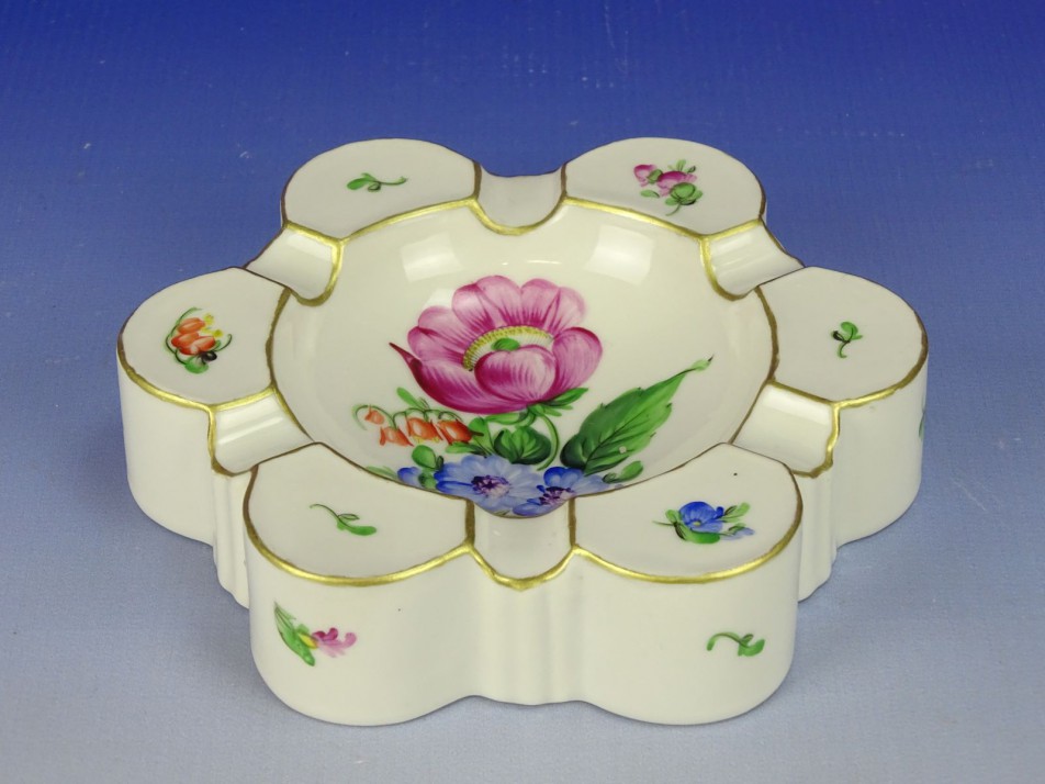 Régi hatállásos kézi festésű virágdíszes Herendi porcelán hamutál.