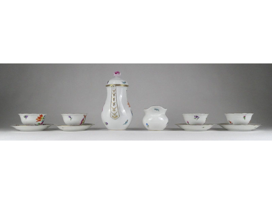 Hibátlan állapotú, "Bouquet de Saxe" virágmintás Herendi porcelán készlet, kávéskészlet.