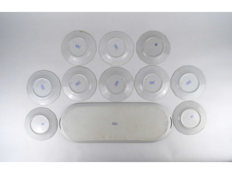 Régi 10 személyes apró virág mintás Herendi süteményes készlet 11 darab