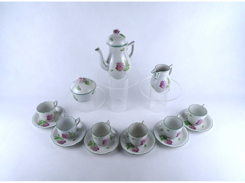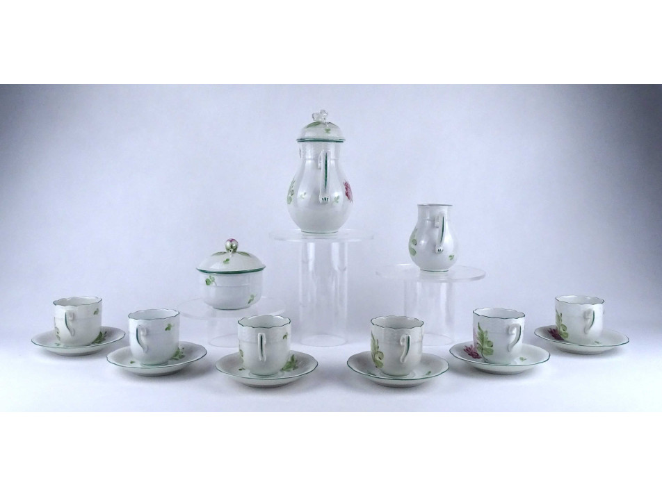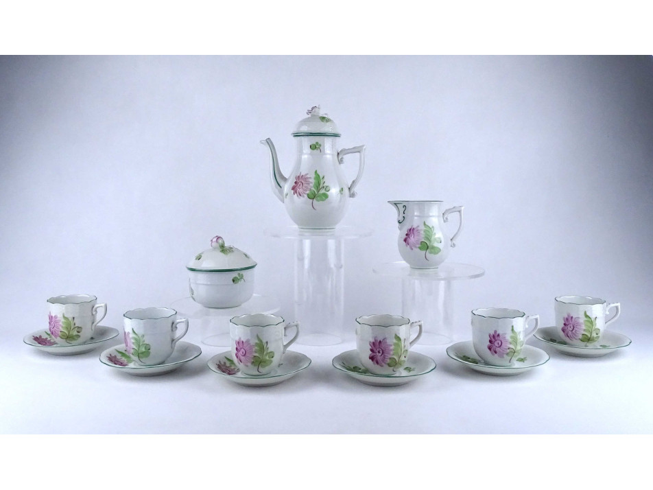 Régi, hat személyes, hibátlan állapotú, virágmintás, Herendi porcelán kávés készlet. 15 darab.