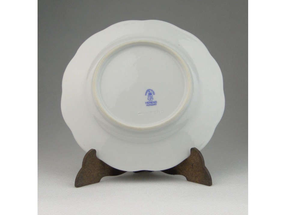 Régi, szép állapotú, jelzett, Herendi porcelán kistányér, piros kézi festésű rózsa díszítéssel, arany szegéllyel.