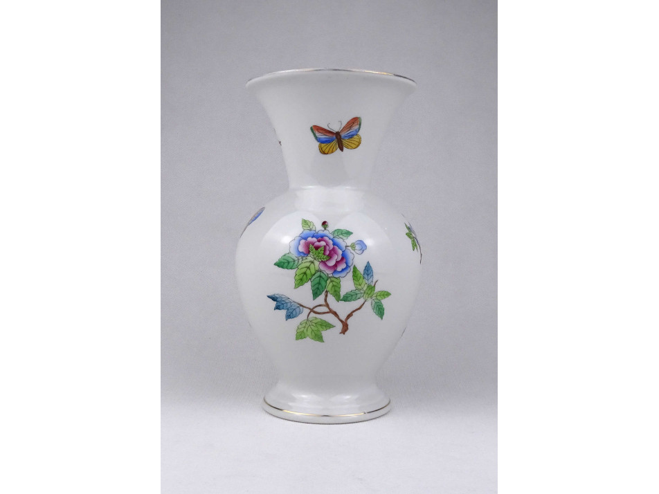 Viktória mintás, fehér, aranyozott Herendi váza 20.5 cm