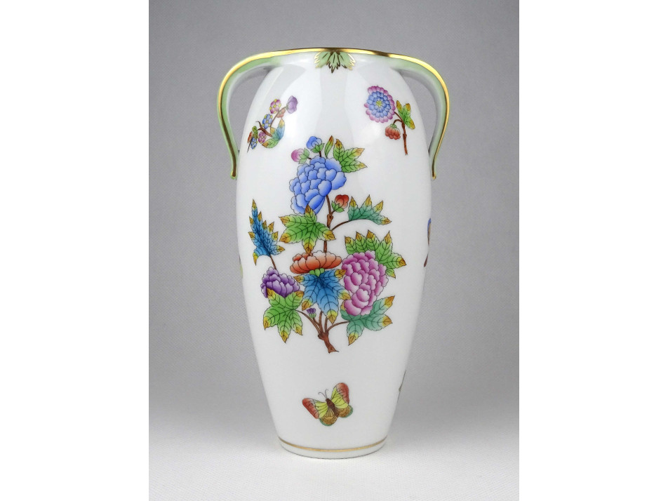 Régi, hibátlan állapotú, kézzel festett Viktória mintás Herendi porcelán váza, díszváza.