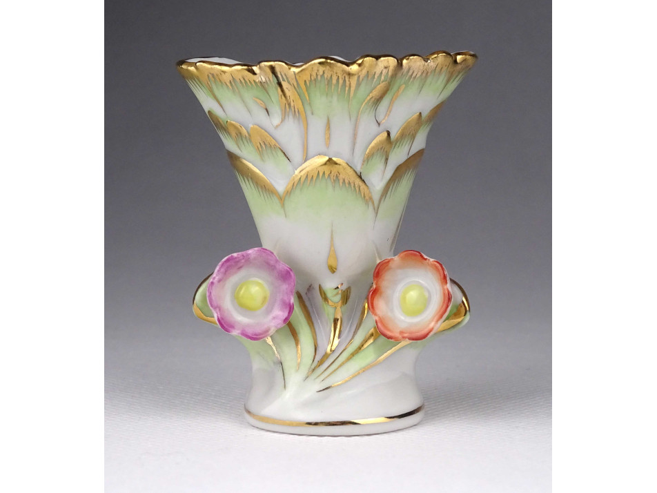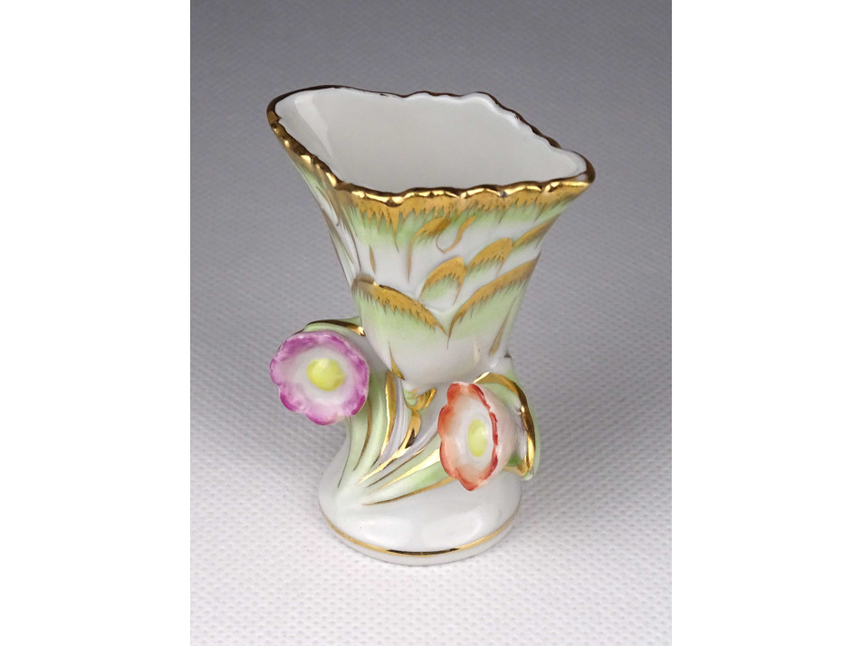 Régi, kisméretű Viktória mintás Herendi porcelán váza, ibolyaváza.