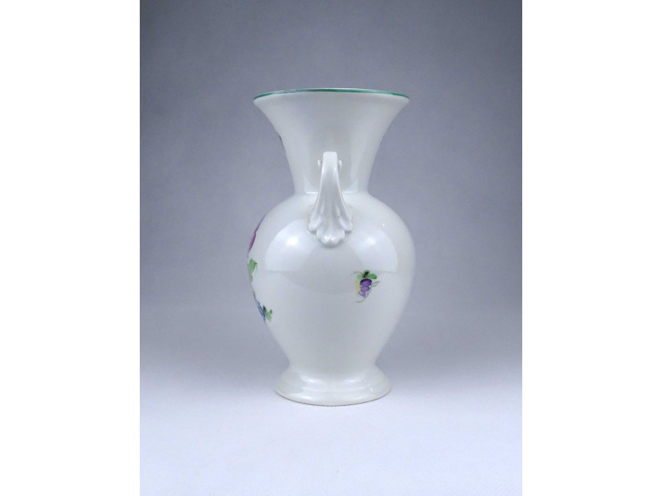 Antik kézzel festett jelzésű, szép állapotú, virágmintás Herendi porcelán váza. A váza felső pereme restaurátor által szakszerűen javított.