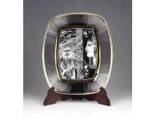 Hibátlan állapotú, gazdagon aranyozott, kézi festéssel díszített, négyszög alakú, Hollóházi porcelán asztalközép, kínáló tál, gyümölcskínáló. Aranyozása kopásmentes, ajándékba adható!