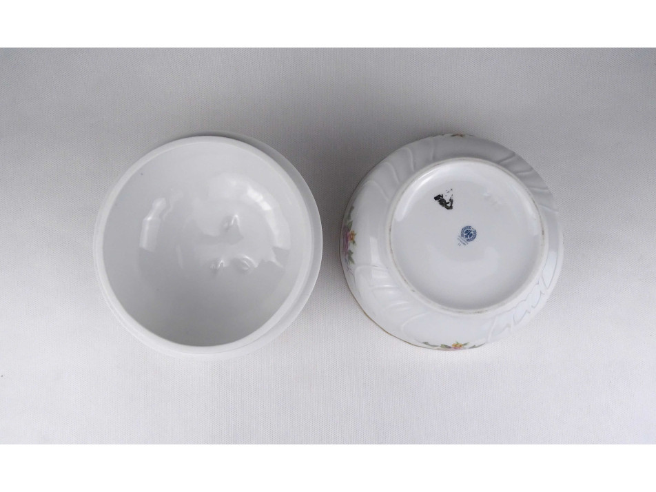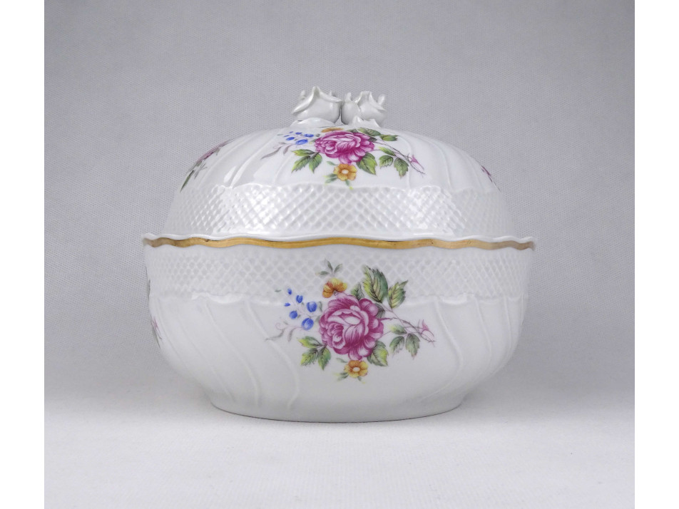 Hatalmas Hajnalka mintás, aranyozott-fehér Hollóházi porcelán rózsás bonbonier 17 cm