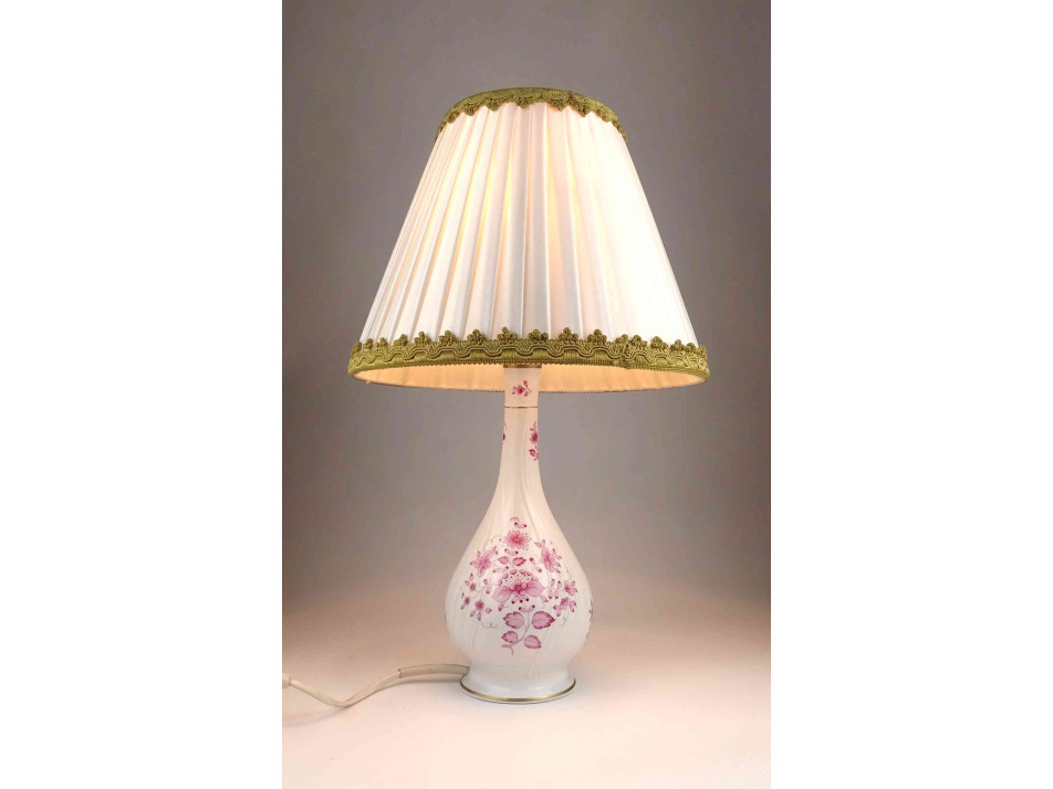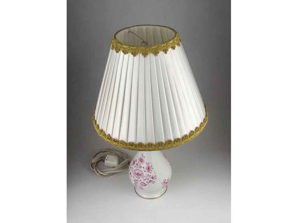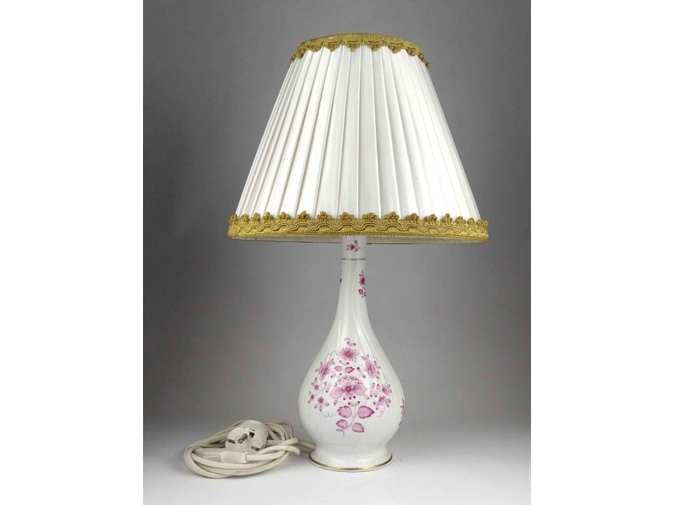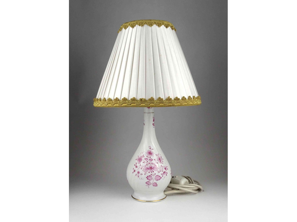 Rózsaszín virág mintás Hollóházi porcelán asztali lámpa 41 cm