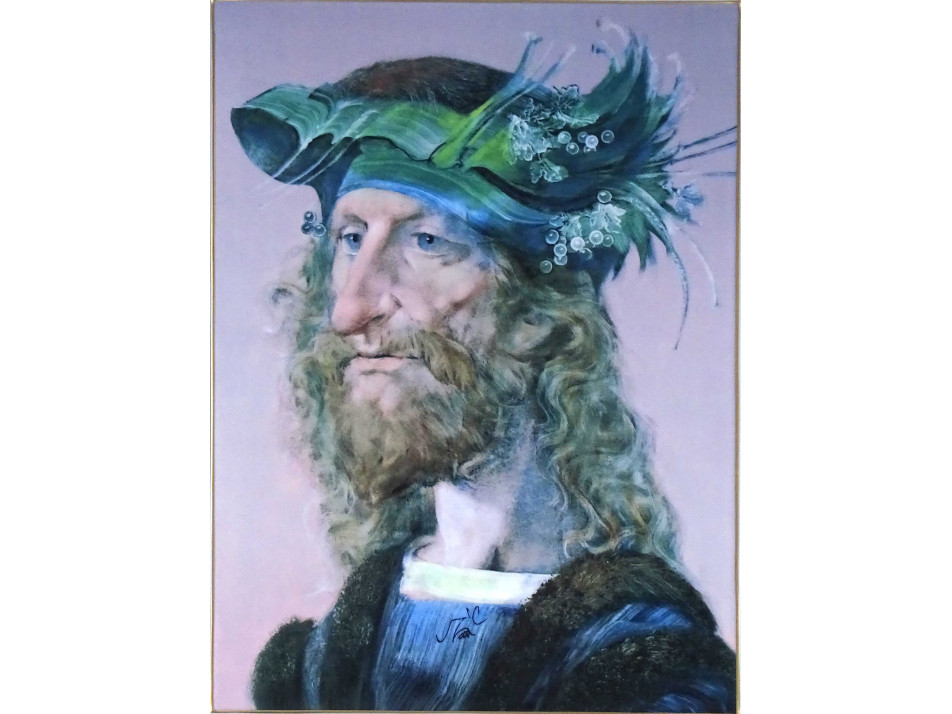 Hibátlan állapotú, valódi arannyal aranyozott, szakállas férfi portrét ábrázoló, Szász Endre hollóházi porcelán falikép. Falra akasztási lehetőséggel rendelkezik.