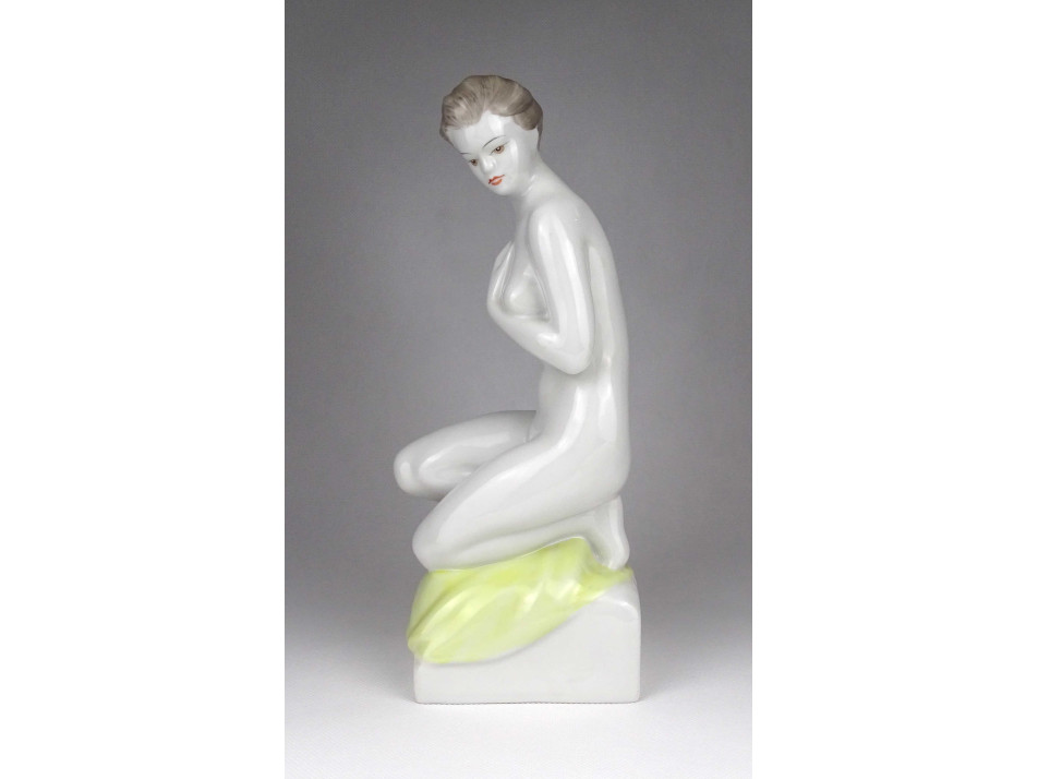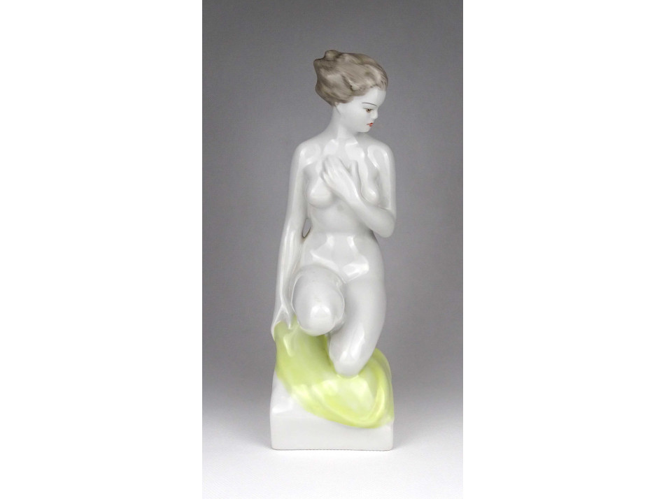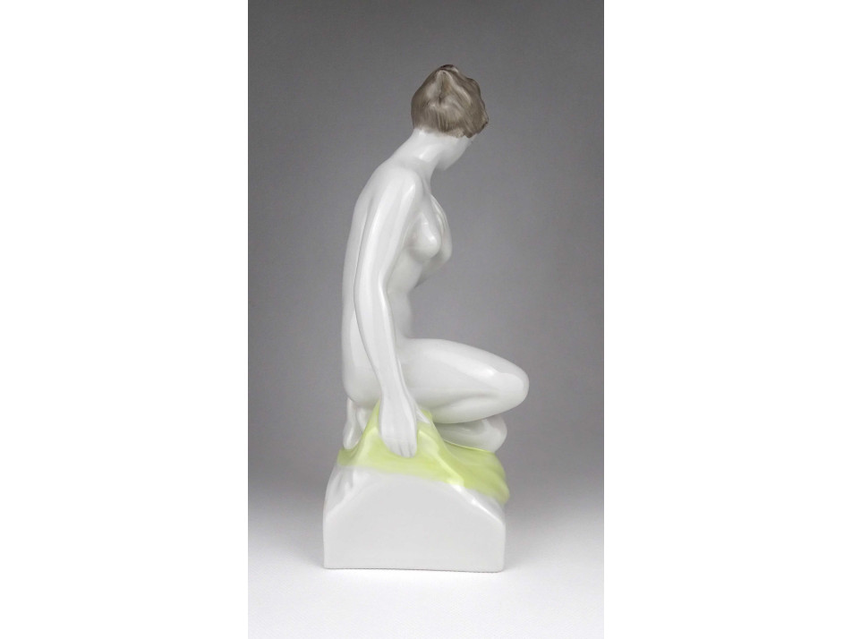 Hibátlan állapotú Hollóházi térdelő porcelán női akt szobor.