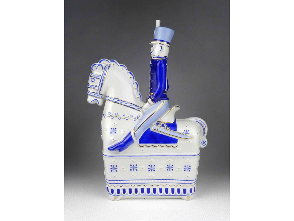 Régi, hibátlan állapotú, nagyméretű, kézzel festett Hollóházi porcelán mézeskalács huszár figura.