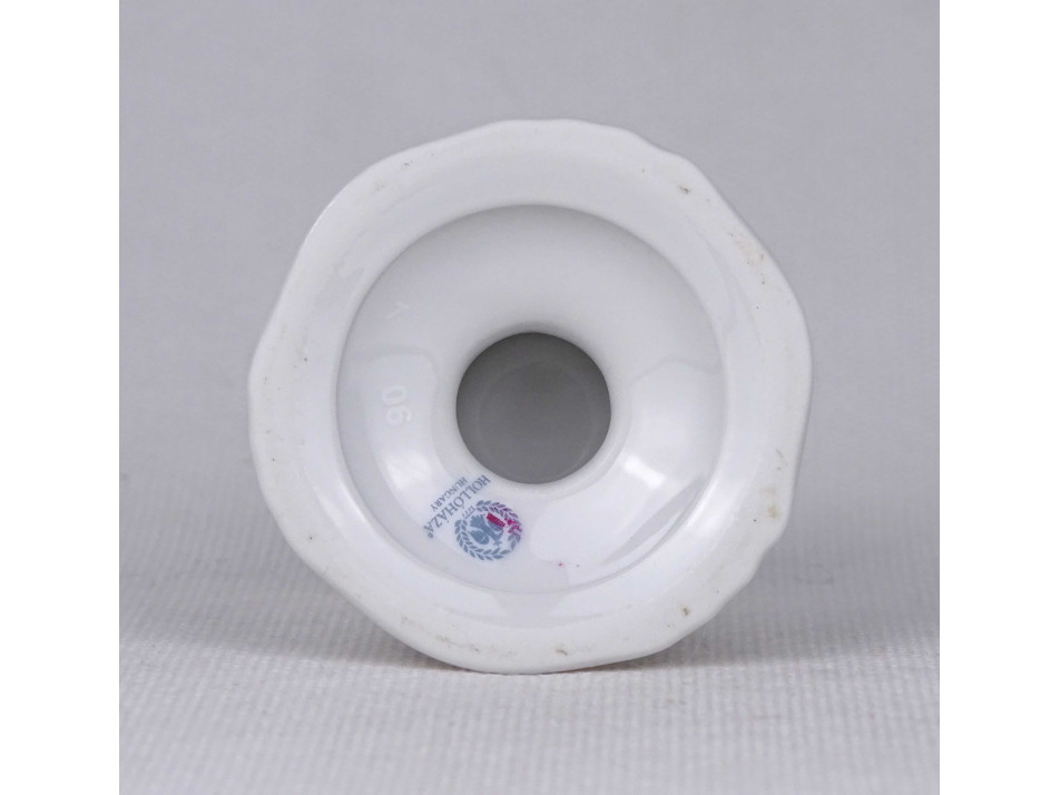 Hibátlan állapotú, kisméretű, alacsony, Erika mintás, arany szegéllyel díszített Hollóházi porcelán gyertyatartó.