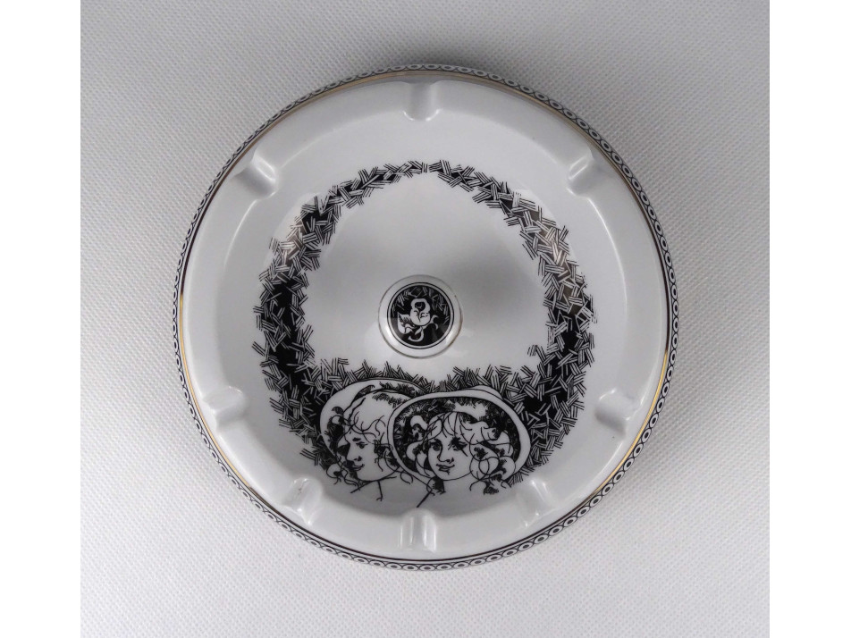 Hibátlan állapotú, Hollóházi porcelán hamutál. Közepében két kalapos úrhölgy Jurcsák László tervei szerint.
