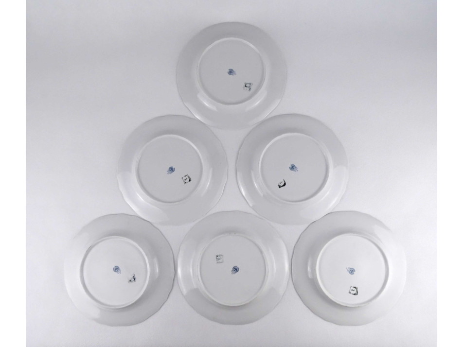 Hibátlan állapotban lévő, jelzett Hollóházi Hajnalka mintás 6 személyes porcelán süteményes tányér, kistányér készlet.