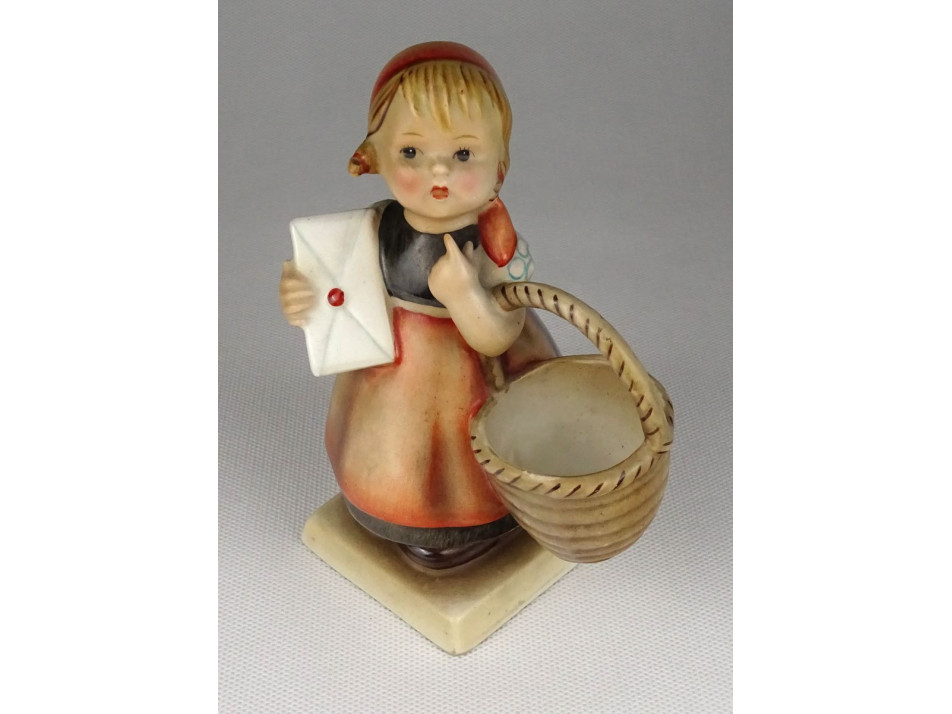 Régi Hummel leveles kosaras porcelán kislány 13.7 cm