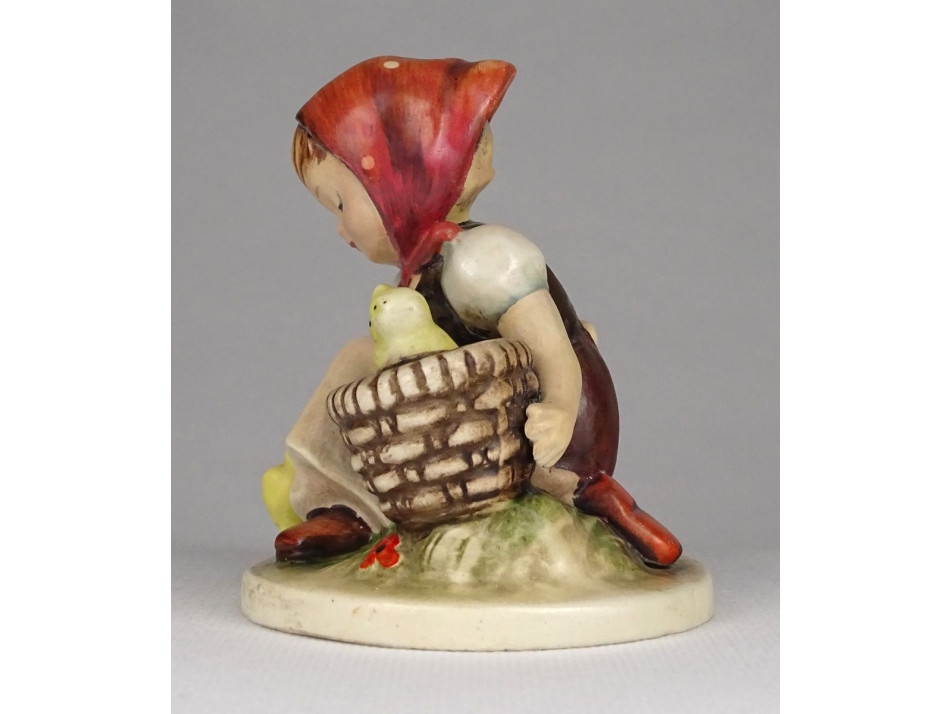 Antik hibátlan állapotú jelzett Hummel porcelán csibés kislány figura.