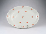 Régi virágmintás, aranyozott Zsolnay porcelán pecsenyés tál