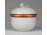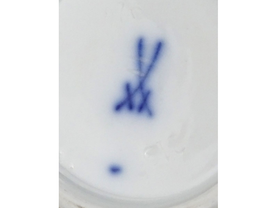 Antik jelzett kis méretű meisseni porcelán cukortartó bonbonier. Tetején plasztikus rózsabimbó, oldalán körben arany és narancssárga díszítés látható.