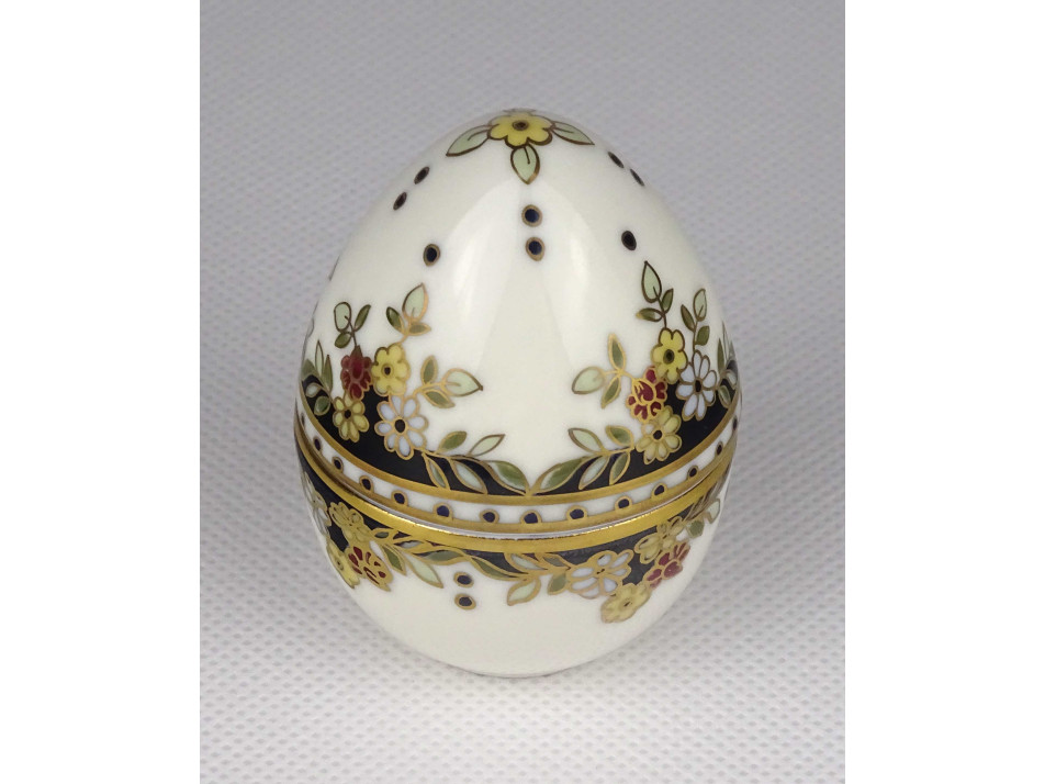 Vajszínű, Sissy mintás, jubileumi Zsolnay porcelán álló tojás bonbonier 6.6 cm