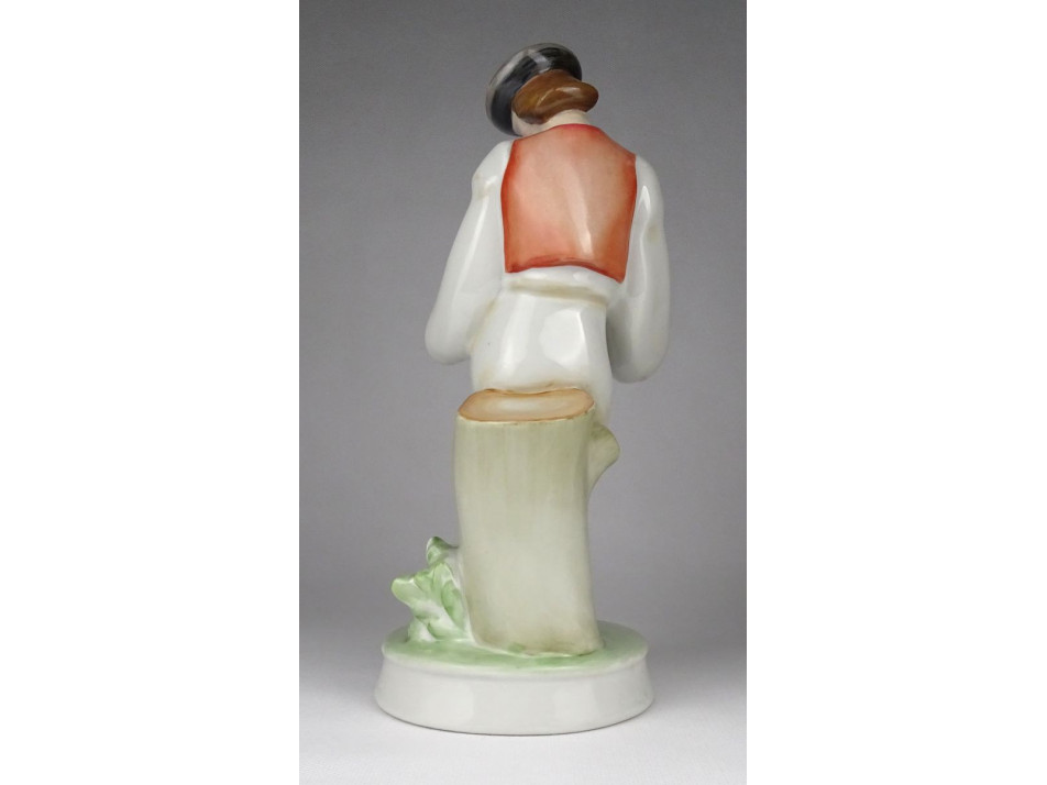 Régi Zsolnay porcelán figura, furulyázó legény kalapban. A nyaka és a furulya javított.