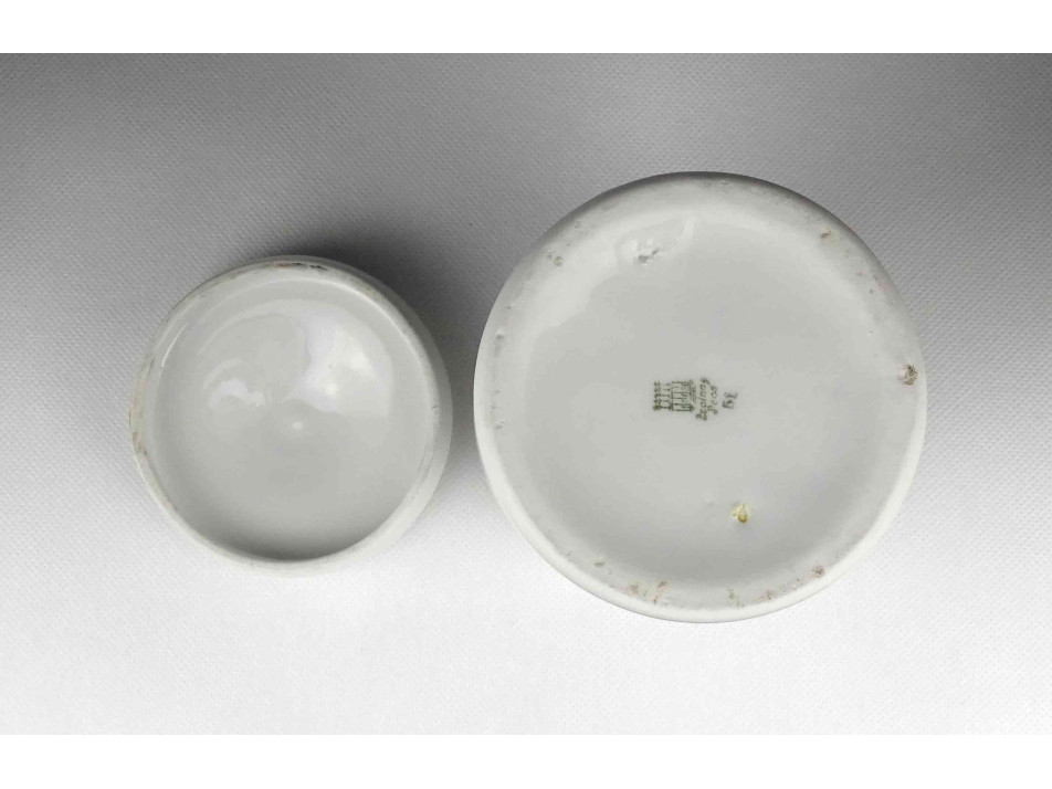 Hibátlan állapotú, nagyméretű gyógyszertári patika edény, tároló. Vastagfalú Zsolnay porcelán tégely, porcelán fedéllel.