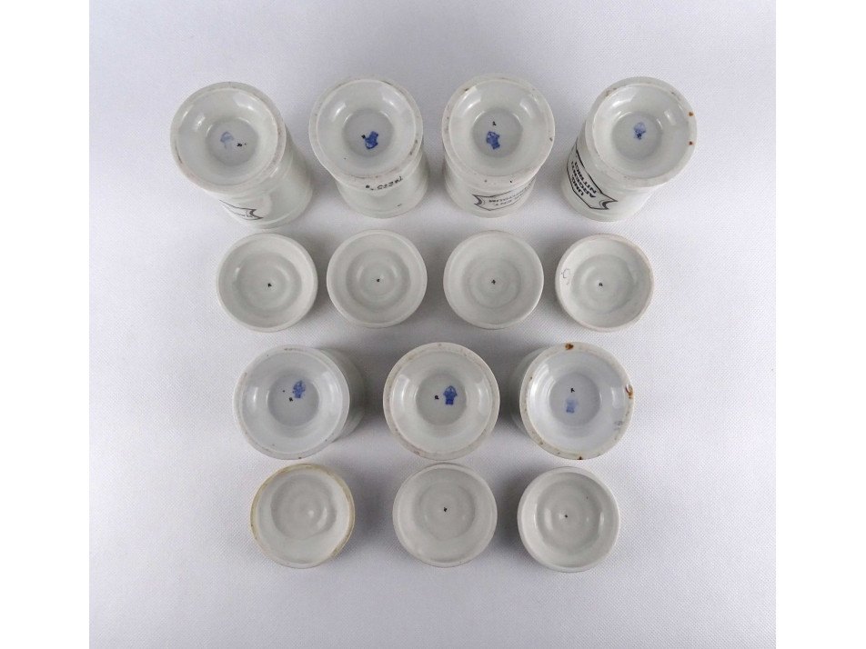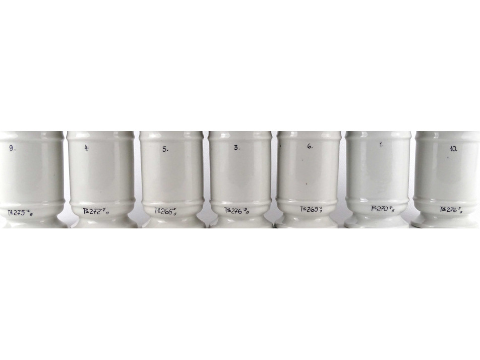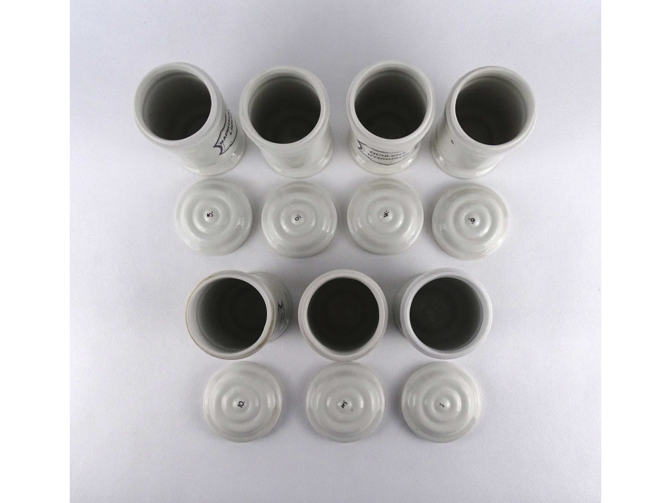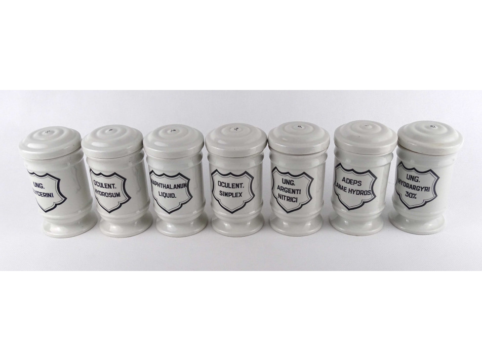 Régi 7 darabos gyogyszertári Zsolnay porcelán patika tégely csomag 13.7 cm