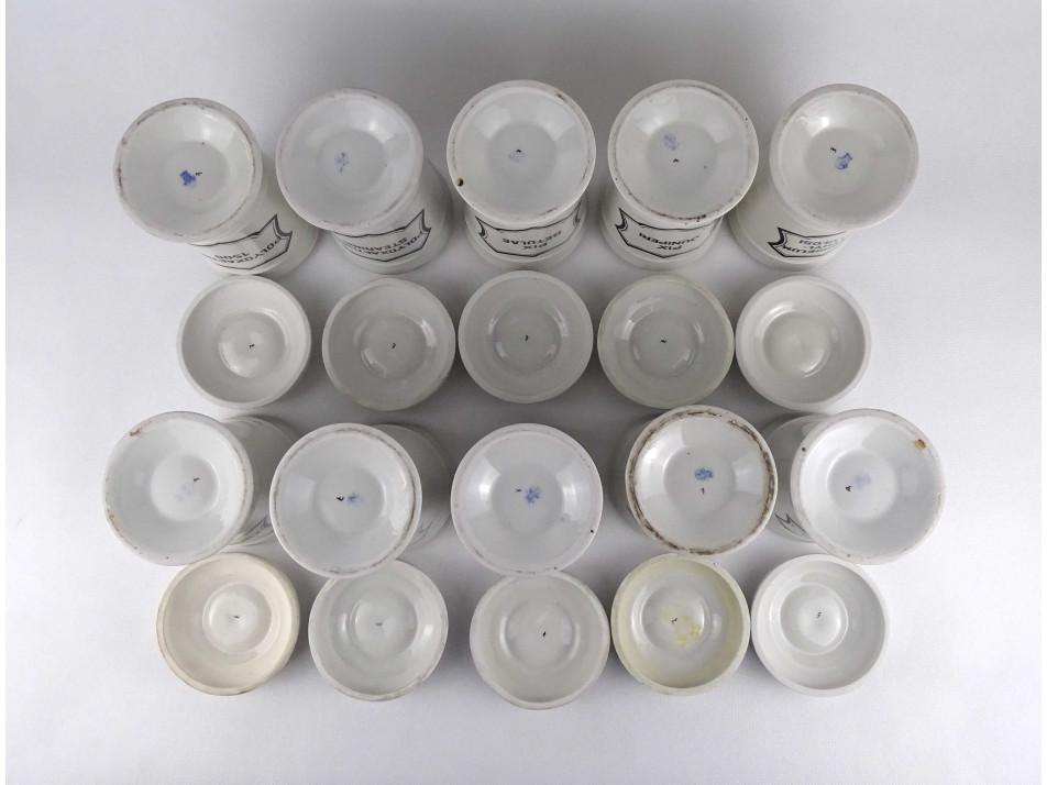 Hibátlan állapotú, nagyméretű gyógyszertári patika edény, tároló csomag. Vastagfalú Zsolnay porcelán tégelyek, porcelán fedéllel, 10 darab egyben.
