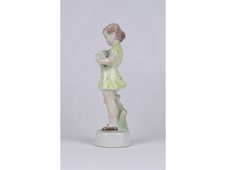 Régi Zsolnay porcelán kislány virággal 13.7 cm