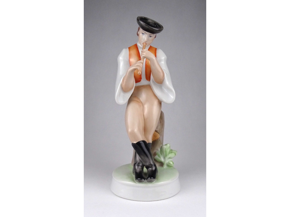 Régi Zsolnay furulyázó legény porcelán figura 27 cm