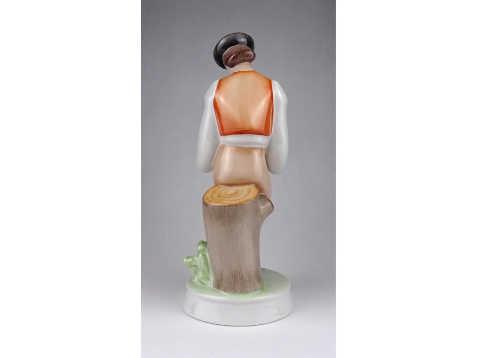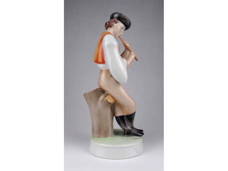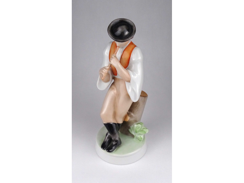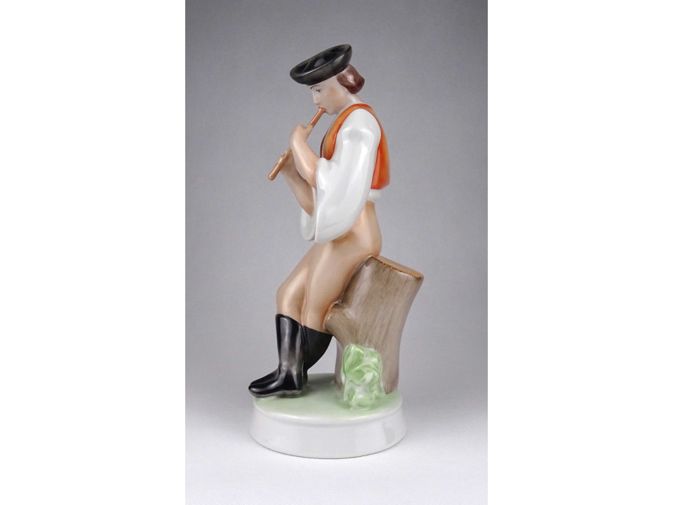 Hibátlan állapotú, Zsolnay porcelán figura, furulyázó legény kalapban.