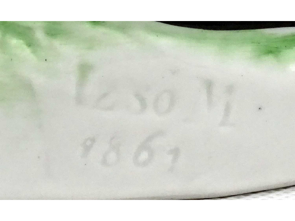 Régi, hibátlan állapotú, Zsolnay - Izsó porcelán figura, kutyájának furulyázó legény tollas kalapban.