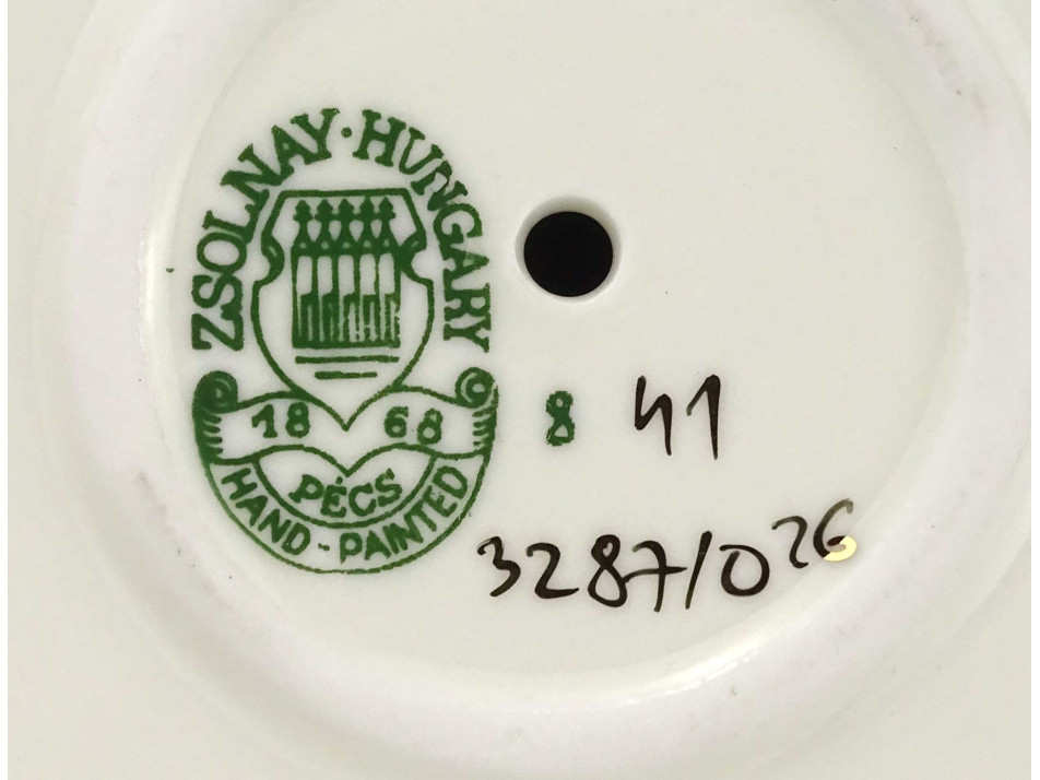 Alján zöld színű Zsolnay öttornyú márkajelzés: