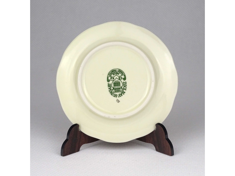 Vajszínű Zsolnay porcelán virágos tányérka 8.5 cm