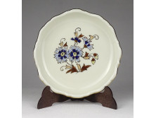 Búzavirág-mintás vajszínű aranyozott Zsolnay porcelán hamutál 12.5 cm