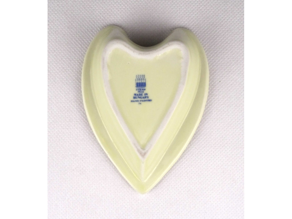 Vajszínű virágmintás szív alakú Zsolnay porcelán hamutál