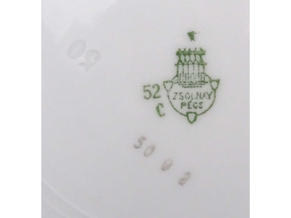 Aljukon zöld színű Zsolnay öttornyú márkajelzés: