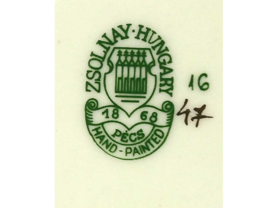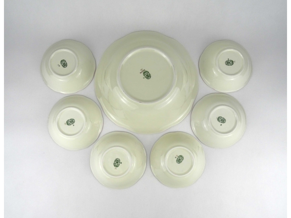 Pillangó mintás vajszínű Zsolnay kompótos készlet 6+1 darab