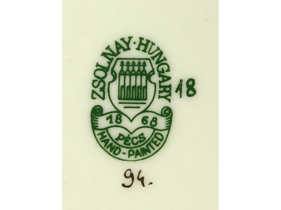 Vajszínű Zsolnay porcelán kompótos készlet pillangó és virág mintákkal díszítve, gazdagon aranyozva.