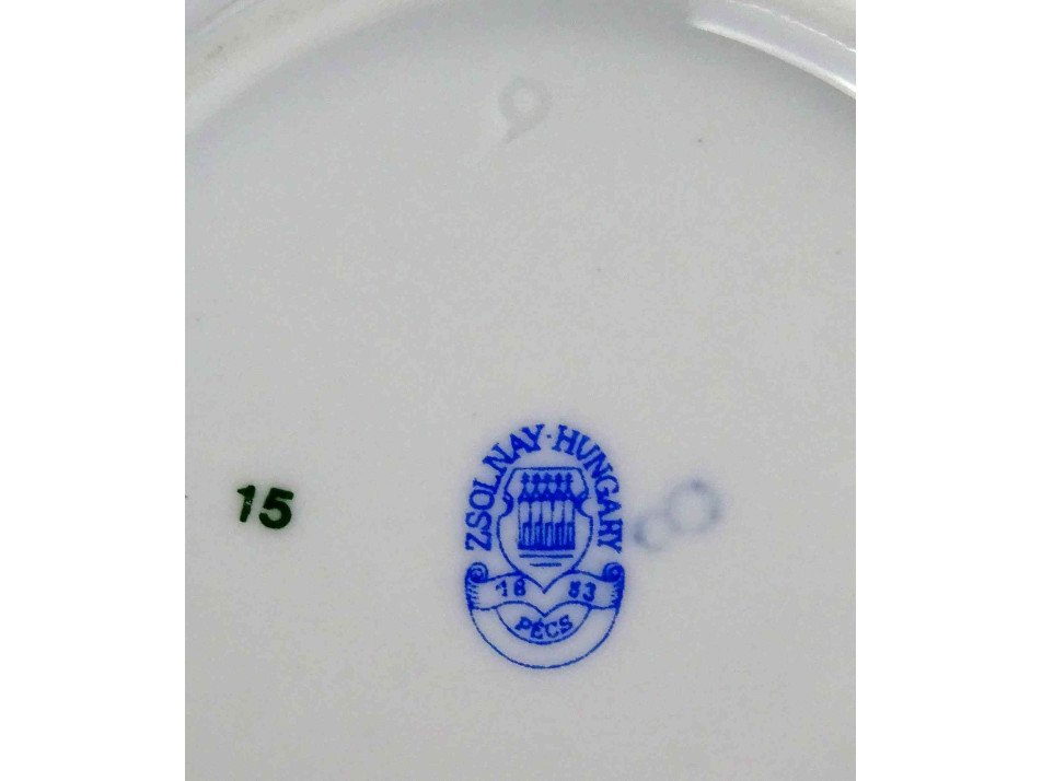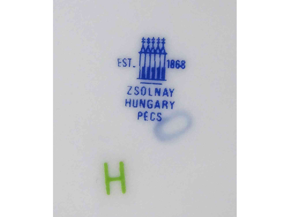 Alján kék Zsolnay öttornyú márkajelzés: