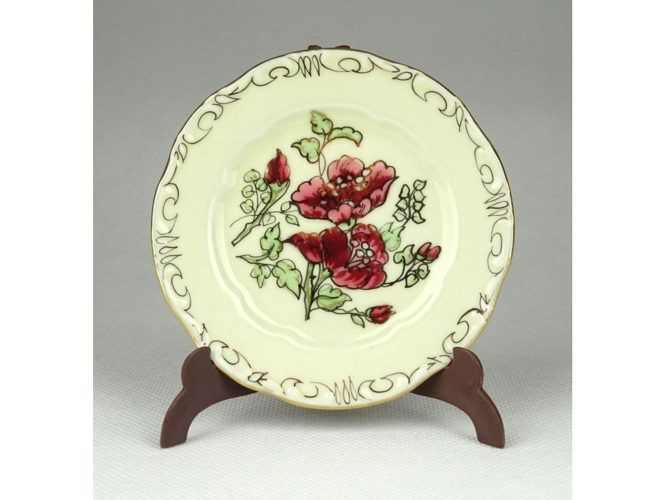 Vajszínű Zsolnay porcelán virágos tányérka 8.5 cm