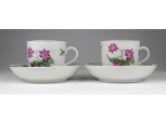 Antik jácint mintás óherendi porcelán kávéscsésze pár