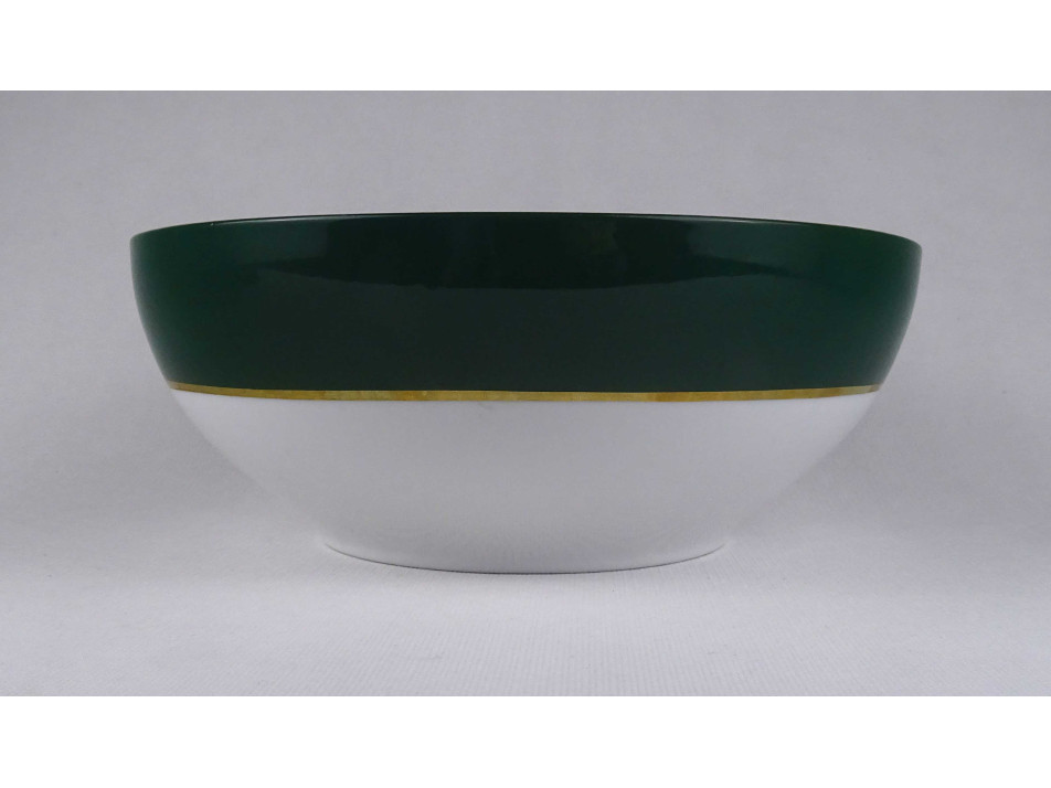 Hibátlan állapotú Zsolnay Olíva porcelán tésztás tál, zöld színű, aranyozott szegéllyel.