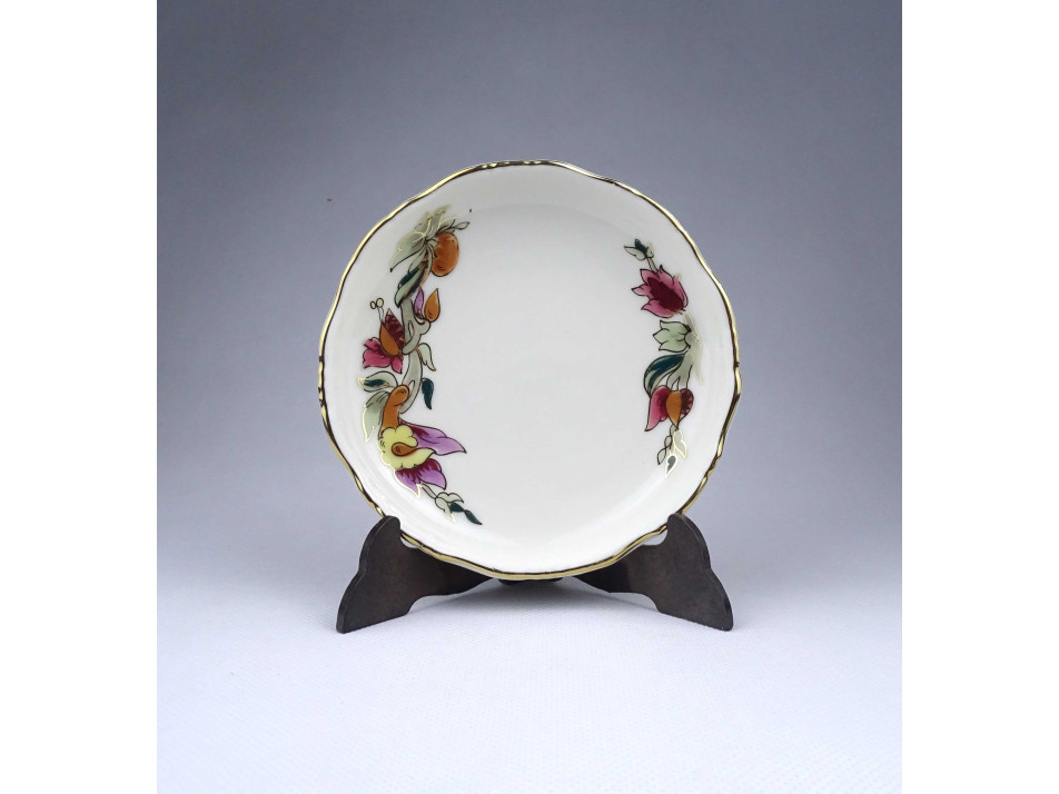 Vajszínű orchidea mintás Zsolnay porcelán tálka hamutál 12 cm