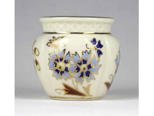 Ritka virágmintás, aranyozott, vajszínű Zsolnay porcelán váza 13 cm