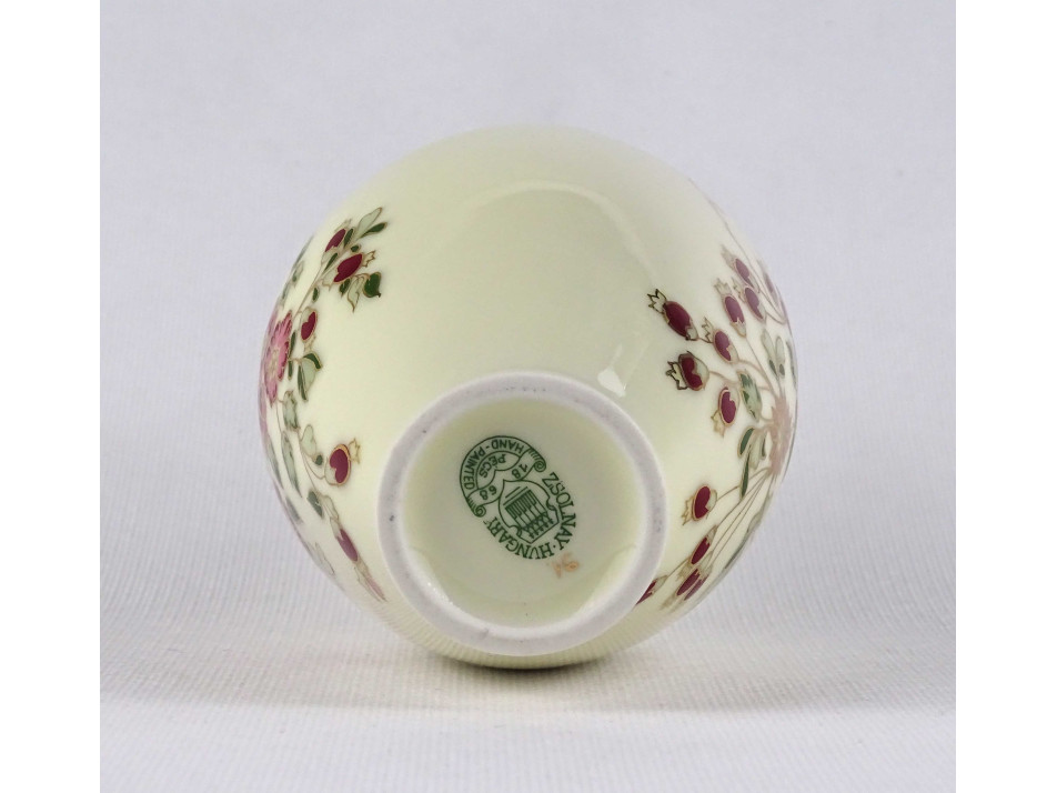 Vajszínű, aranyozott, virágos Zsolnay porcelán váza 14.5 cm