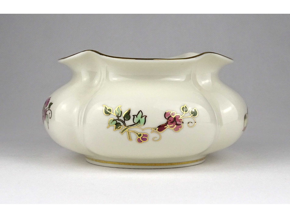 Hibátlan állapotú, gazdagon aranyozott, virágmintás, pillangós, öblös, gerezdes Zsolnay porcelán váza.